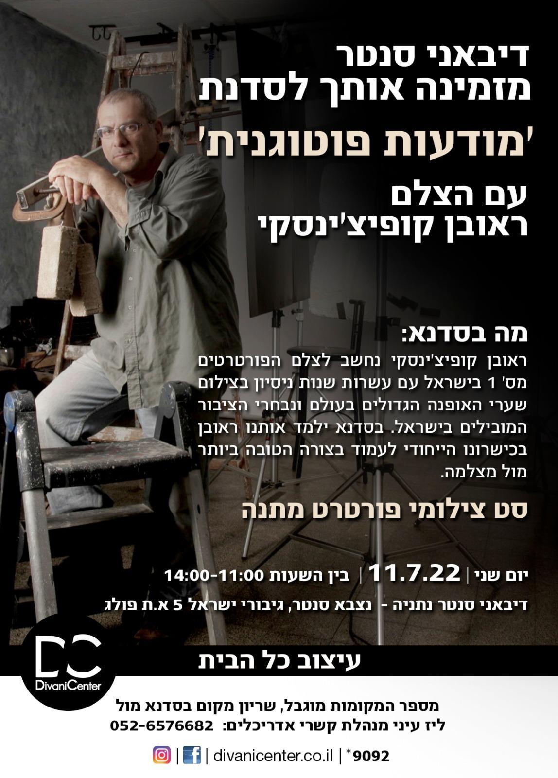 באירוע מעצבים בסניף נתניה הזמנו את חברי המועדון שלנו לסדנא מקצועית “מודעות פוטוגנית” בהנחיית ראובן קופיצ`ינסקי אחד מצלמי הפורטרטים המובילים בישראל.