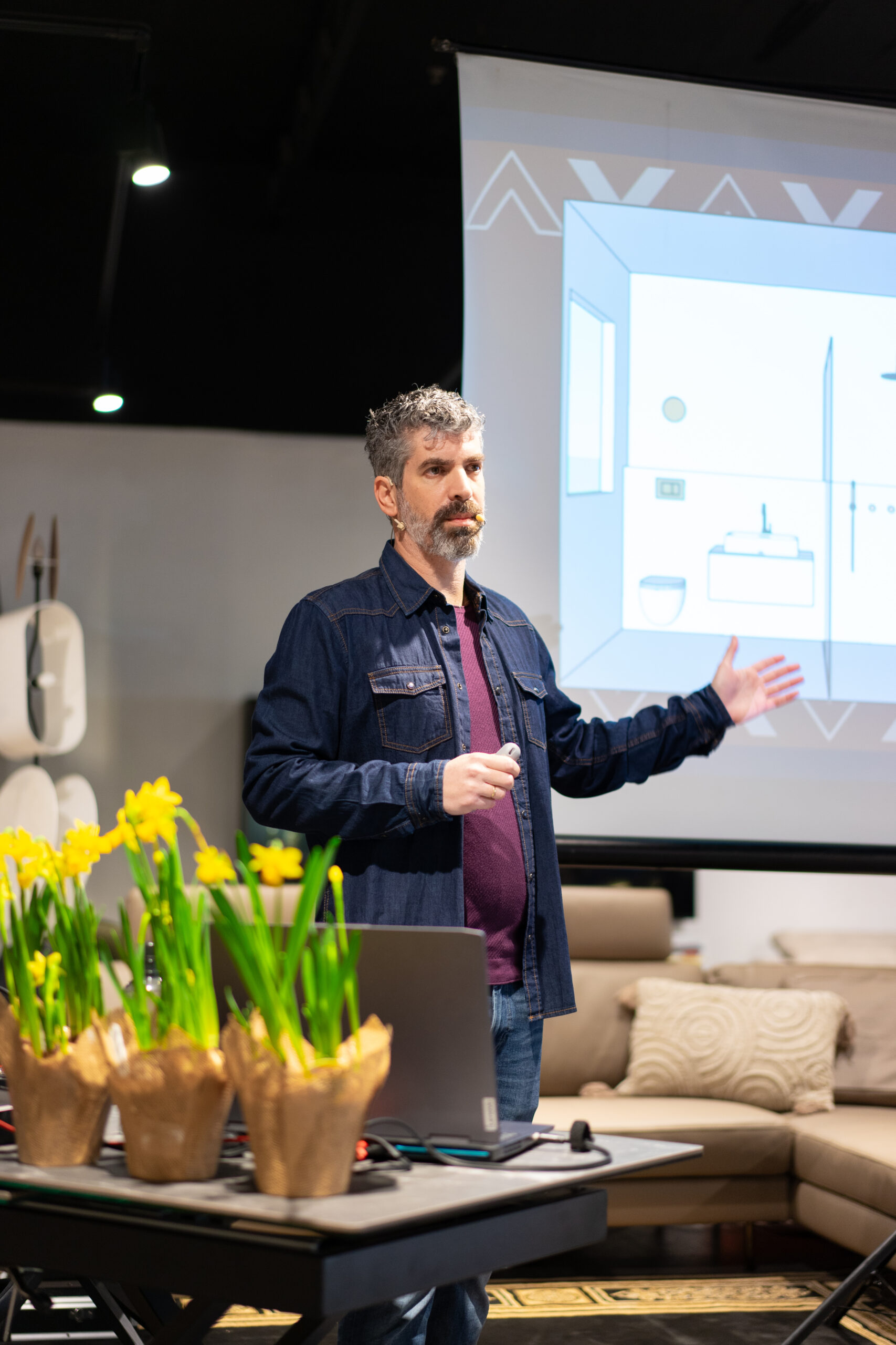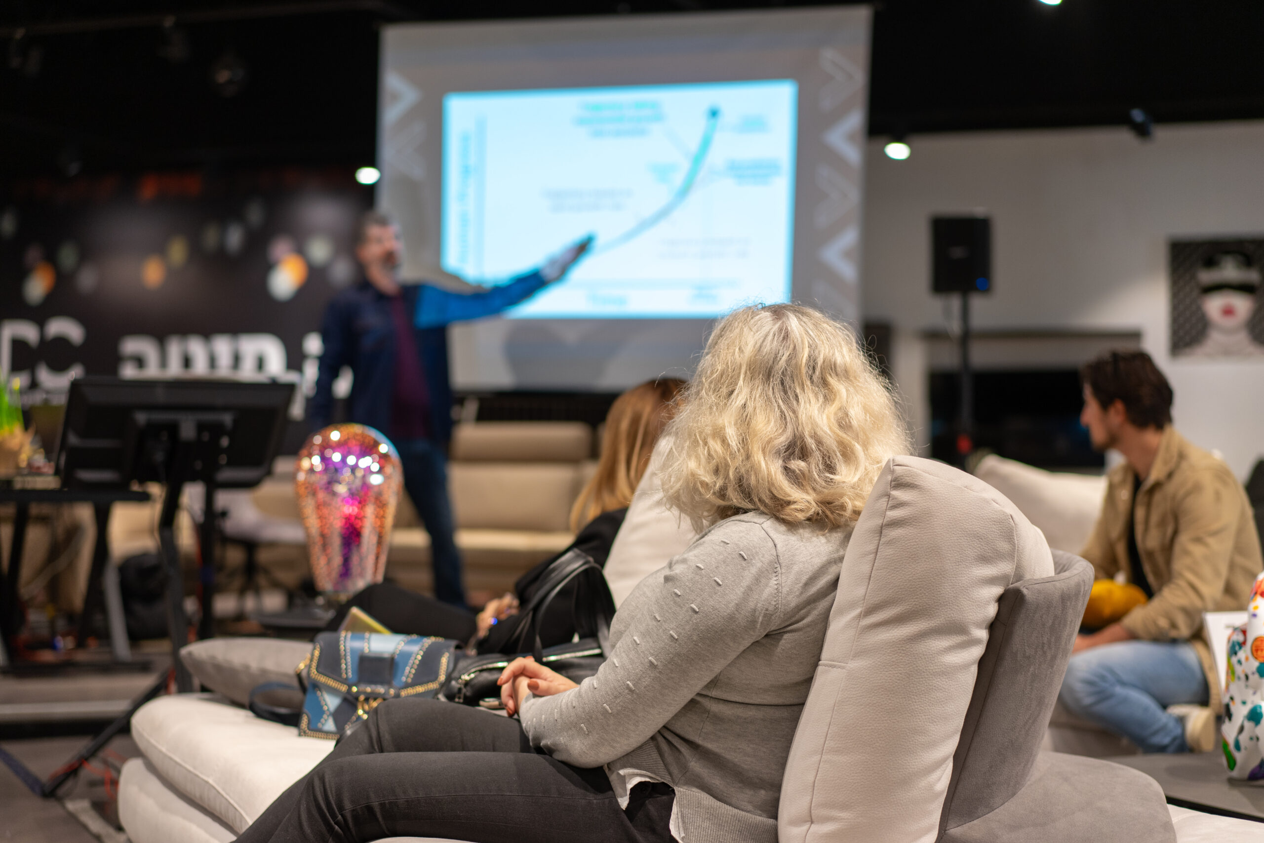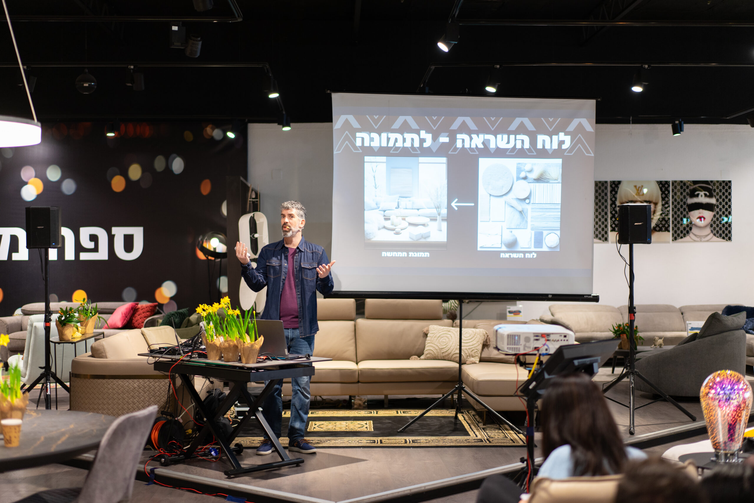 < חזרהסדנה AI למעצבי הפנים שלנו שנערך בסניף חיפה, נפגשנו למינגלינג בינה מלאכותית בתחום העיצוב, חדשנות, טרנדים ופונקציונליות ל2024.