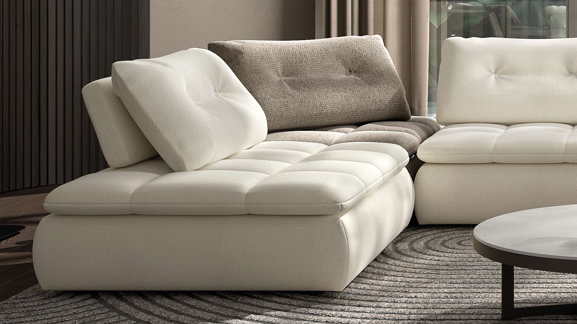 ספת פינה עם משענות גב מתכווננות, מרופדת בבד פוליאסטר איכותי.
