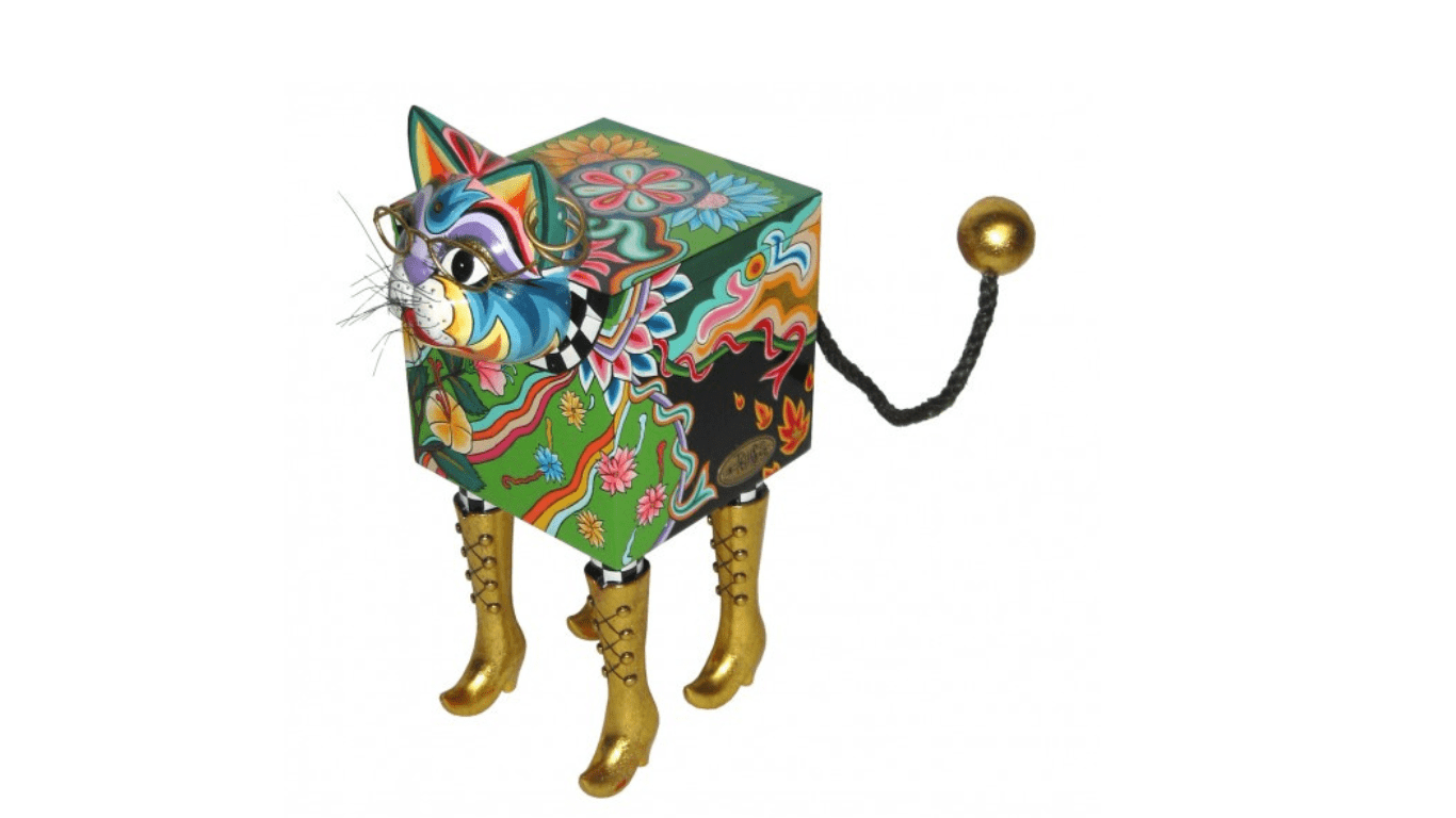 פריט עיצוב דגם Box Cat XL קופסת אחסון צבעונית משיש, פריט עיצובי להשלמת מראה יוקרתי לבית.