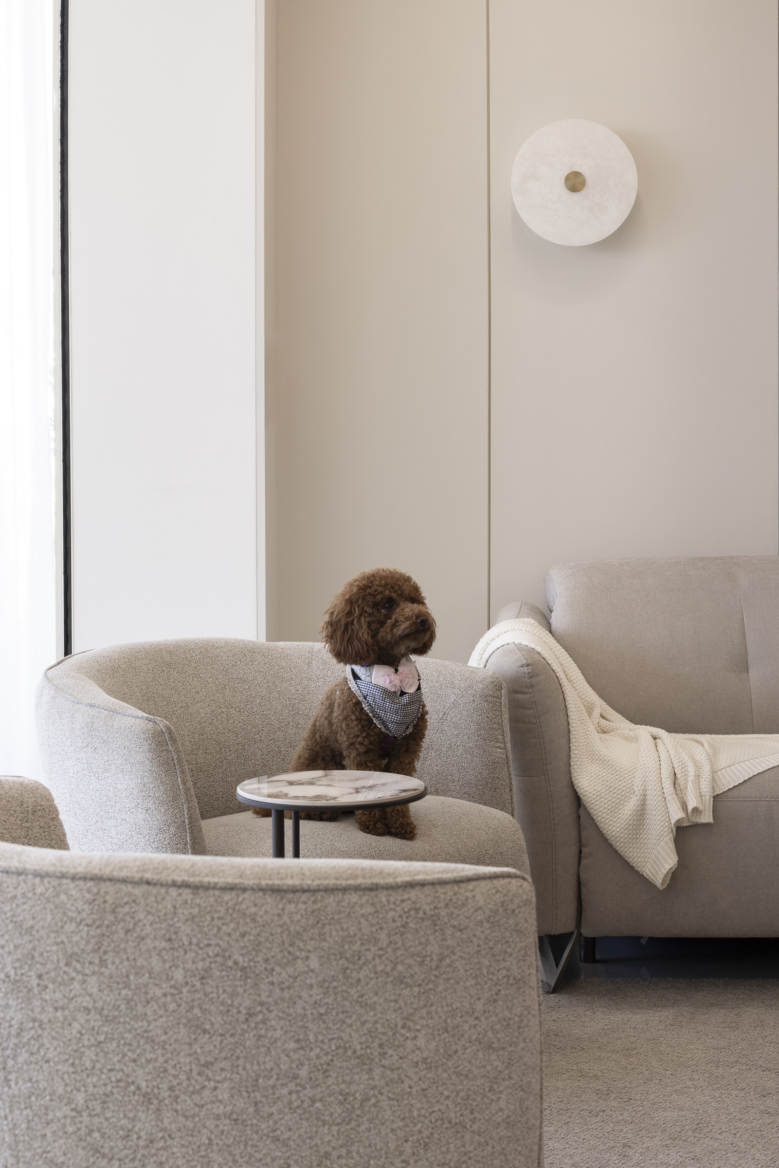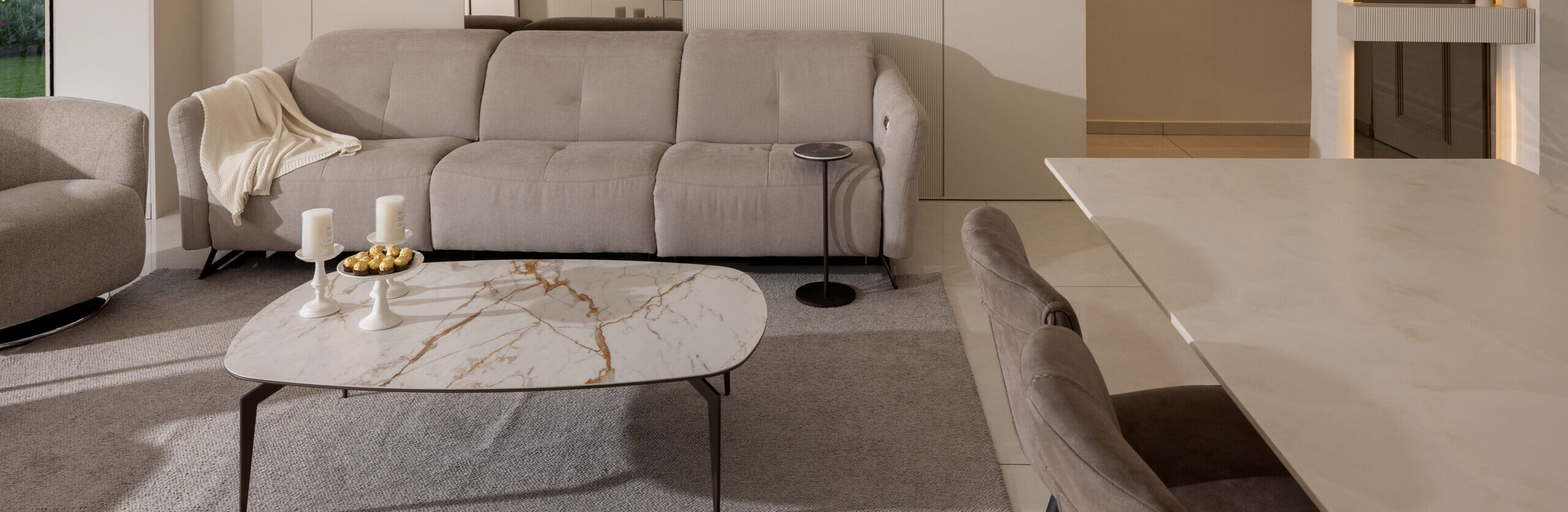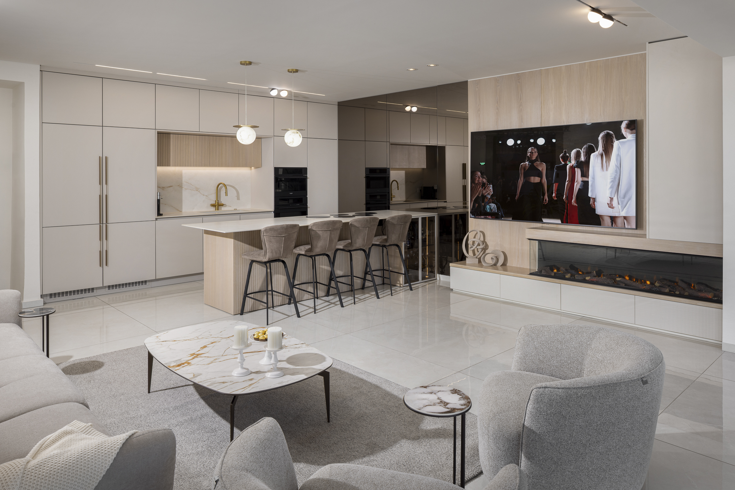 החללים נבנו בקווים נקיים , חומריות מחבקת ותכנון מוקפד המשלב בין פונקציונליות לאסתטיקה . המטרה שלנו הייתה ליצור בית שקט, אלגנטי, מלא אור , עם תחושה של איזון בכל פינה. המטבח והסלון הוא לב הבית ובו שילבנו את המוצרים של דיבאני סנטר - מפגש של פונקציונליות וסטייל. שילוב מדויק של חומרים טבעיים, גוונים רגועים ואור שמש שנכנס בשפע.